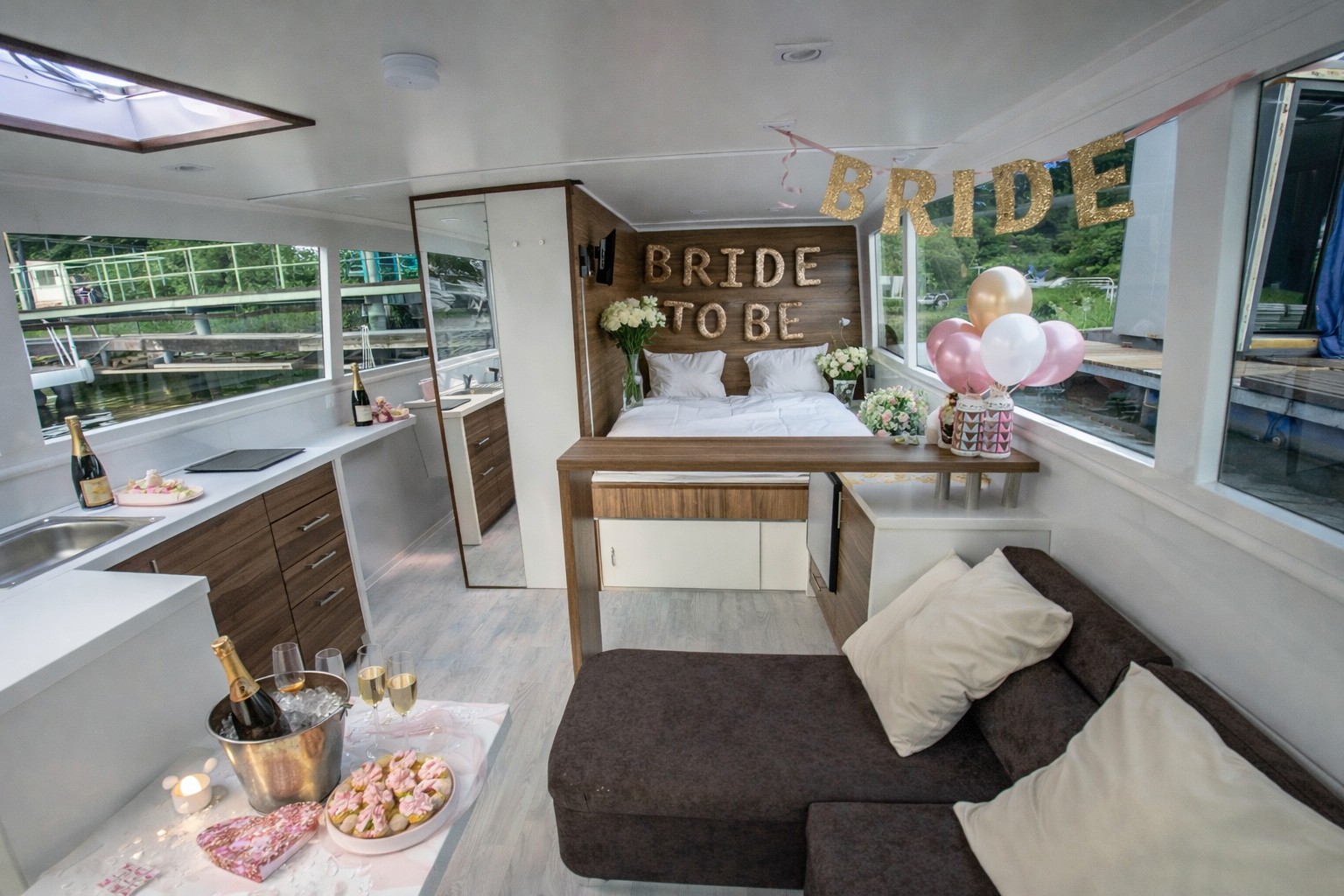 Kde jinde se rozloučit se svobodou než stylově na naší moderní jachtě v Praze na Vltavě. Moderní hausbót nabízí jedinečný design a plný komfort pro 11 pasažérů.